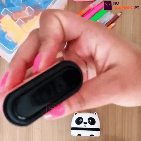 Transforme a marcação dos seus itens escolares com facilidade! Basta abrir o carimbo, adicionar duas gotas em cada círculo do meio, fechar com cuidado, agitar e pronto para marcar com precisão e praticidade.