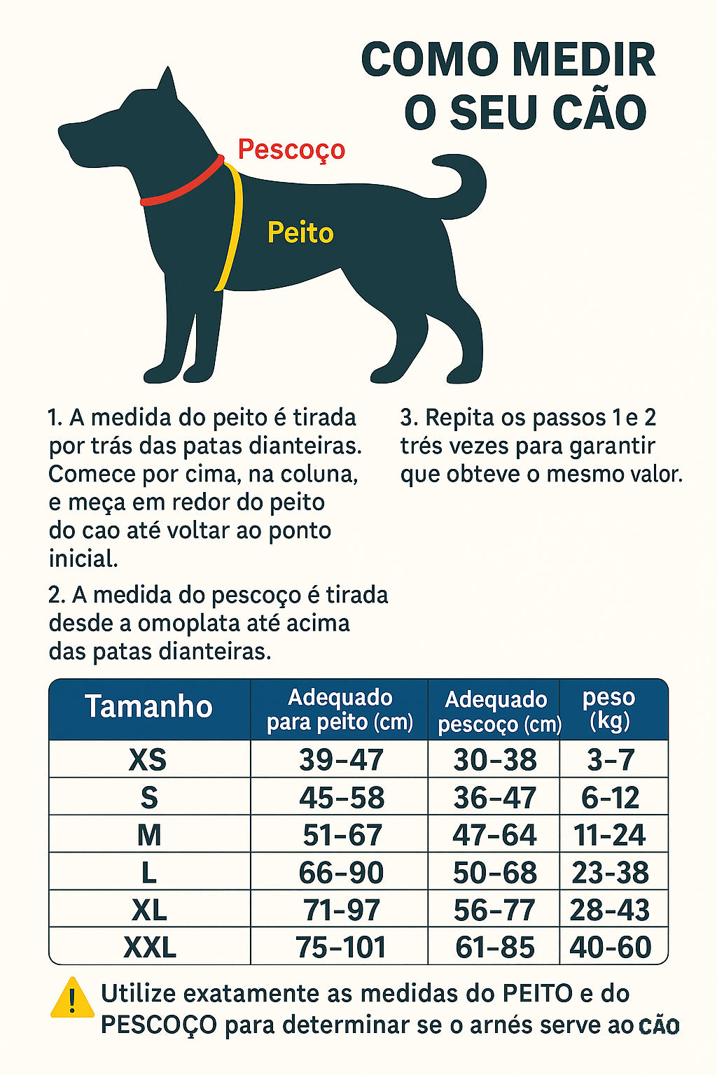 ❌ Não inclui trela, fivela frontal ou outros acessórios demonstrados nas imagens